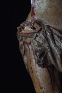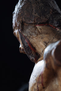 The figure of Christ has a long tradition in art and sculpture. Our statue depicts the crucifixion of Christ, shown already dead with his eyes rolled back, head tilted to the right and a gapping mouth showing the sufferings of the Passion.
