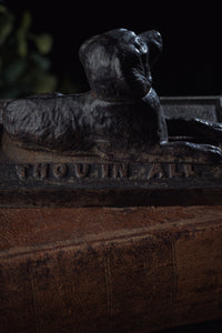 Some headstones were designed to capture the animal's likeness and often depicted them sitting or lying on a bed, just like this salesman sample gravestone paperweight.
