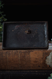 Piece has overall light wear consistent with age and use. It has a great overall patina. Some of the bronze coating has rubbed off around the edges of the base, but it only adds to the overall look of the piece.