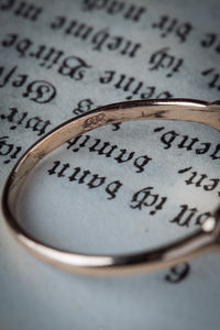 Handcrafted in beautiful 10k yellow gold with just the slightest rosy hue, this late Victorian beauty is simple in design, yet complex with its intricately and artfully detailed shoulders.